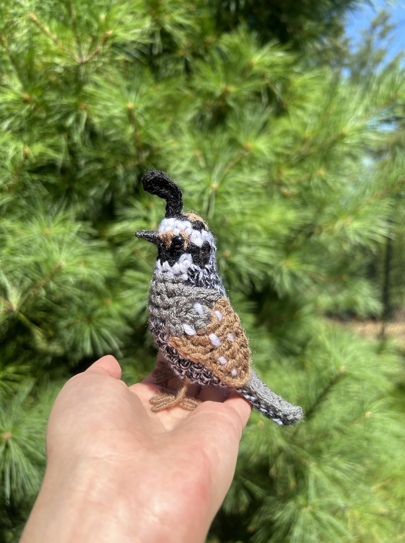 Meet my crochet California Quail — a charming and distinctive bird made with care and lots of attention to detail. Inspired by one of nature’s most recognizable and beloved birds, this piece is perfect for anyone who loves wildlife, handmade art, or a simple touch of nature in their space.